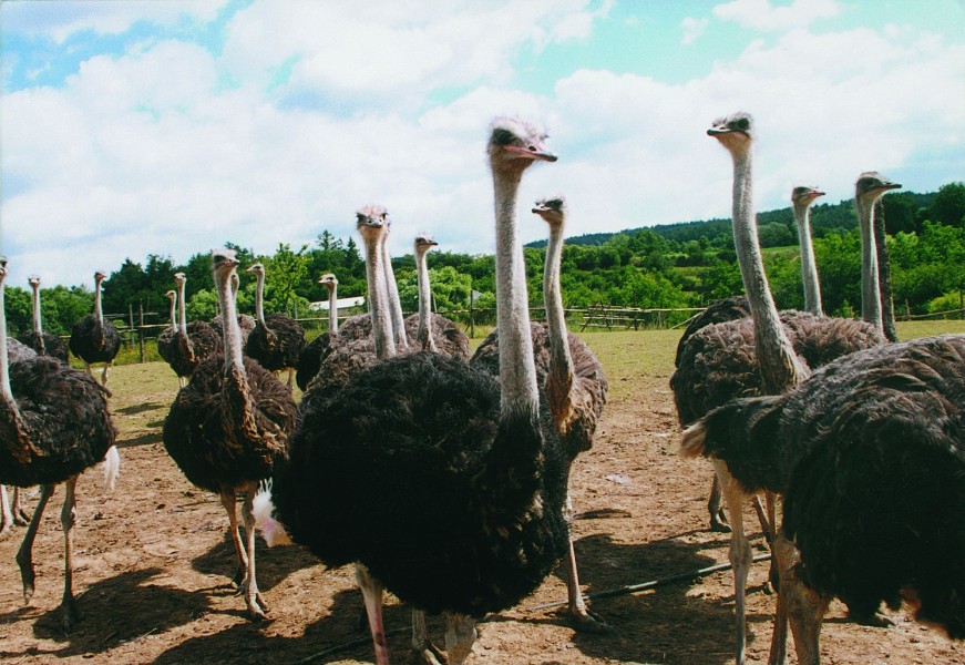 Šlechtitelský chov pštrosů - produkuje chovný materiál, maso, uzeniny, vejce, peří a výrobky z kůže. Nabízí exkurze s občerstvením, grilované steaky, klobásy, pštrosí produkty. Možnost nákupu v podnikové prodejně, catering, export do zahraničí.